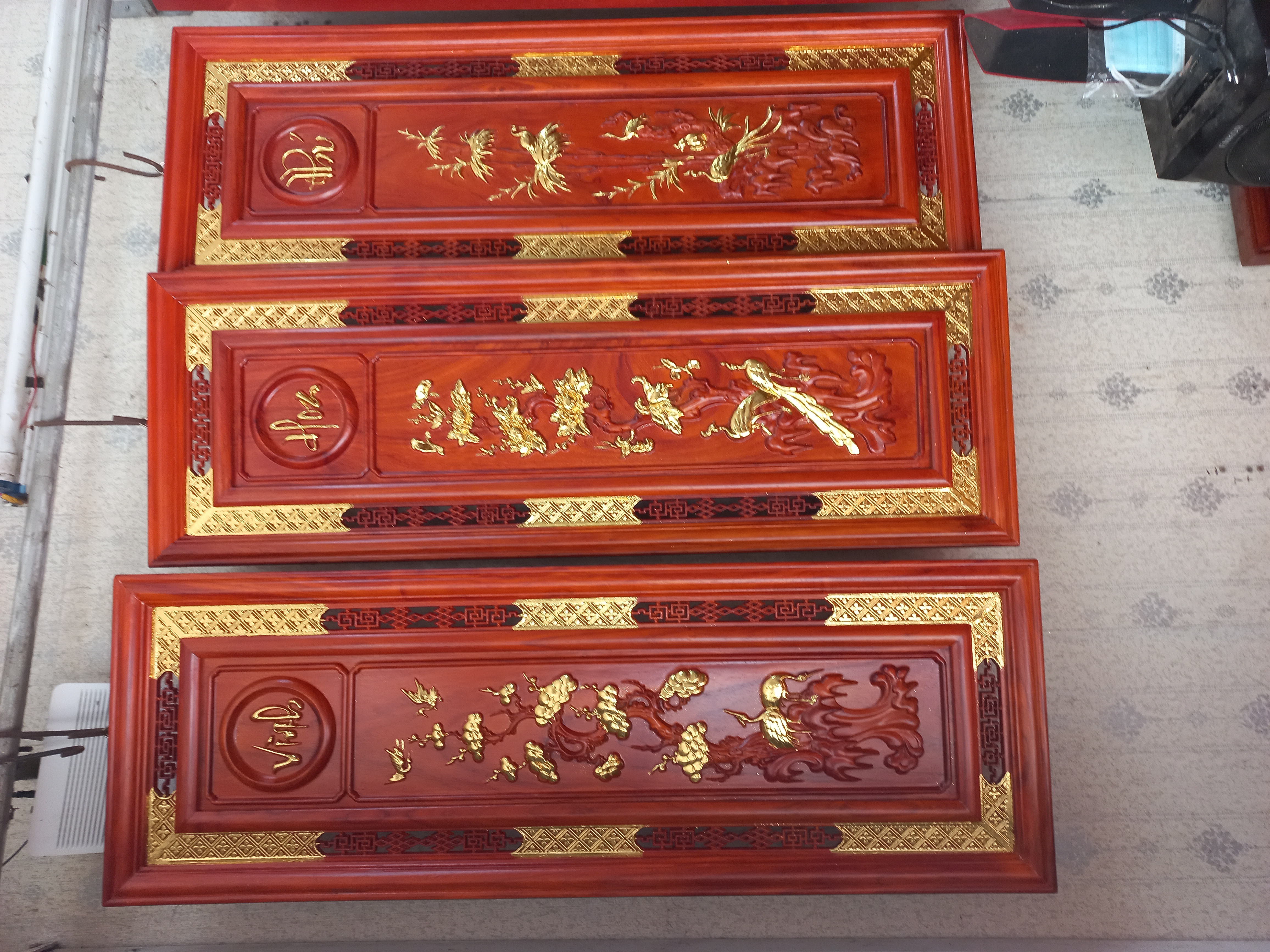 ✨Tranh tứ quý bốn mùa xuân hạ thu đông bằng gỗ hương đỏ