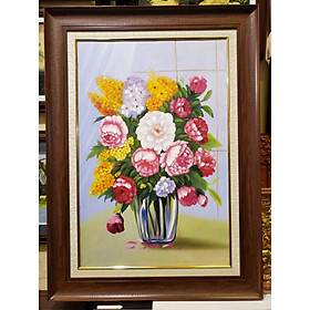 TRANH VẼ SƠN DẦU TĨNH VẬT BÌNH HOA CHẤT LIỆU TRANH ,VẼ SƠN DẦU TRÊN VẢI TOAN KHUNG TRANH MÀU VÂN GỖ COMPOSITE CAO CẤP KÍCH THƯỚC PHỦ KHUNG 82*112CM