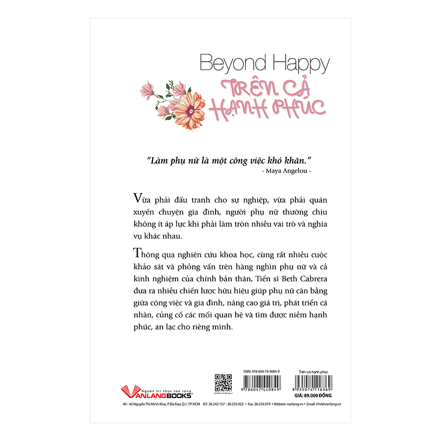 “Làm phụ nữ là một công việc khó khăn.” - Maya Angelou – Vừa phải đấu tranh cho sự nghiệp, vừa phải quán xuyến chuyện gia đình, người phụ nữ thường chịu không ít áp lực khi phải làm tròn nhiều vai trò và nghĩa vụ khác nhau. Thông qua nghiên cứu khoa học, cùng rất nhiều cuộc khảo sát và phỏng vấn trên hàng nghìn phụ nữ và cả kinh nghiệm của chính bản thân, Tiến sĩ Beth Cabrera đưa ra nhiều chiến lược hữu hiệu giúp phụ nữ cân bằng giữa công việc và gia đình, nâng cao giá trị, phát triển cá nhân, củng cố các mối quan hệ và tìm được niềm hạnh phúc, an lạc cho riêng mình.