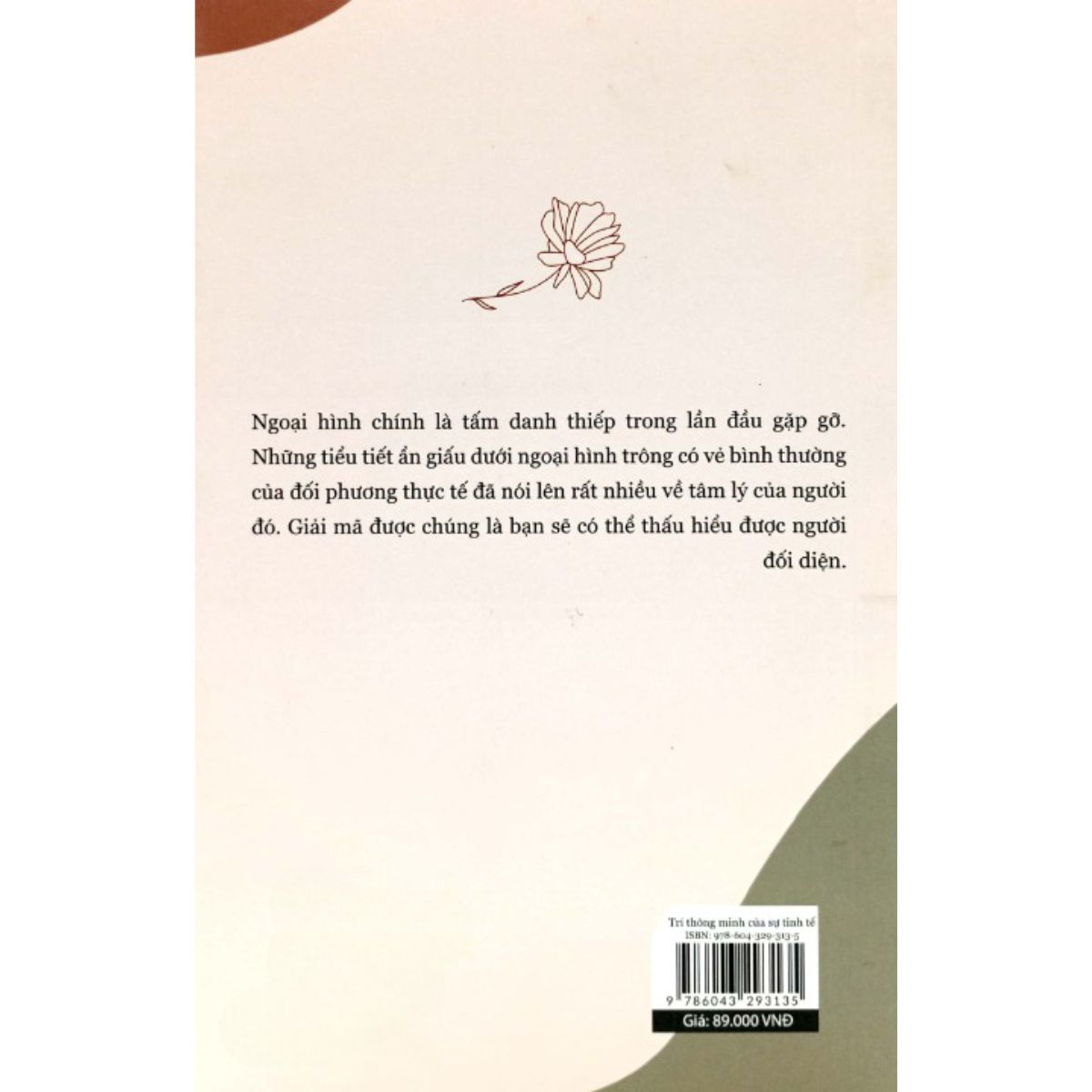 Cuốn sách “Trí thông minh của sự tinh tế" sẽ giúp bạn hiểu rõ tâm tư người đối diện thông qua ngôn ngữ cơ thể, giao tiếp, ngoại hình, thói quen, sở thích… để từ đó có được những gì mình mong muốn và khiến những người xung quanh mình cũng cảm thấy hạnh phúc hơn, cuộc sống tốt đẹp, hài hoà hơn.