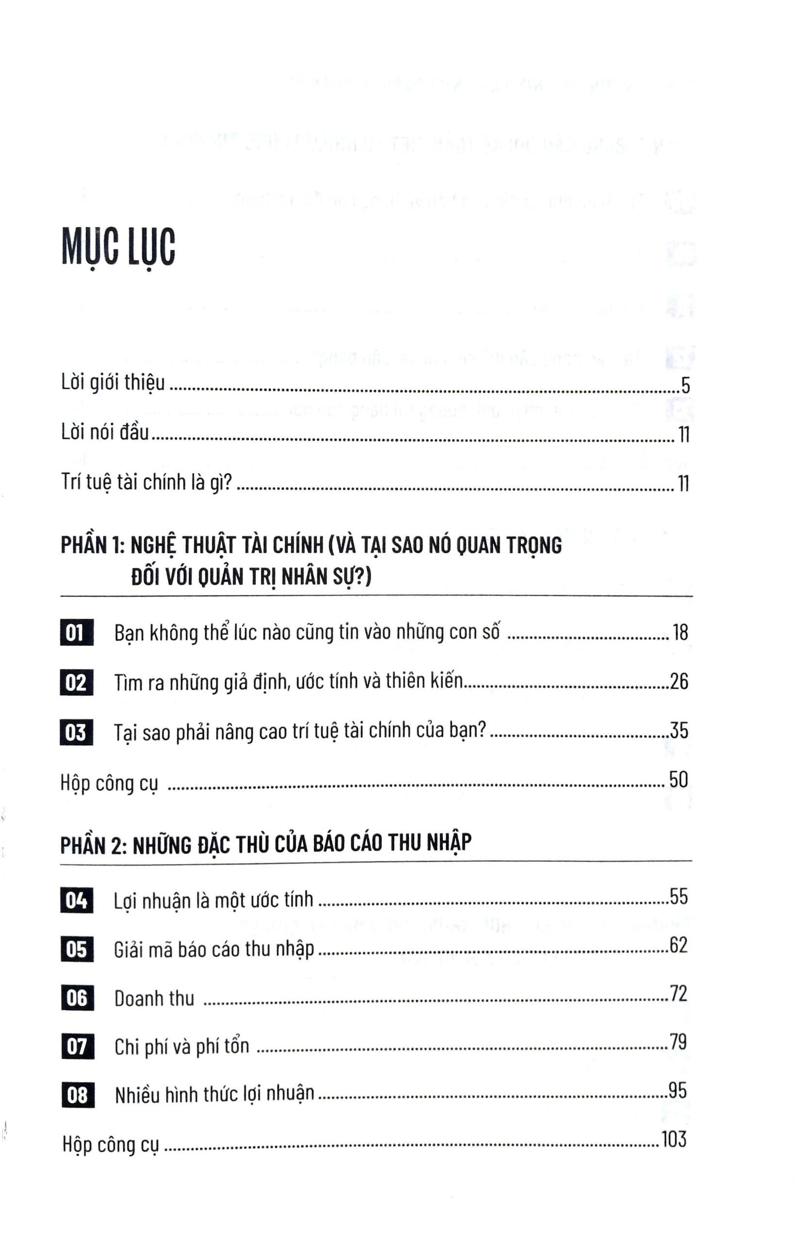 Là một nhà quản lý nhân sự, bạn phải sử dụng dữ liệu tài chính để đưa ra quyết định, phân bổ nguồn lực và lập ngân sách chi phí. Nhưng nếu giống như nhiều người làm ở vị trí này, bạn có thể cảm thấy không chắc chắn khi kết hợp tính toán tài chính vào công việc hằng ngày của mình. Và đây là lúc bạn cần đến Trí tuệ tài chính dành cho nhà quản lý nhân sự. Ba tác giả đã trình bày tất tần tật những hiểu biết cần thiết về tài chính dành riêng cho các chuyên gia nhân sự trong cuốn sách này.