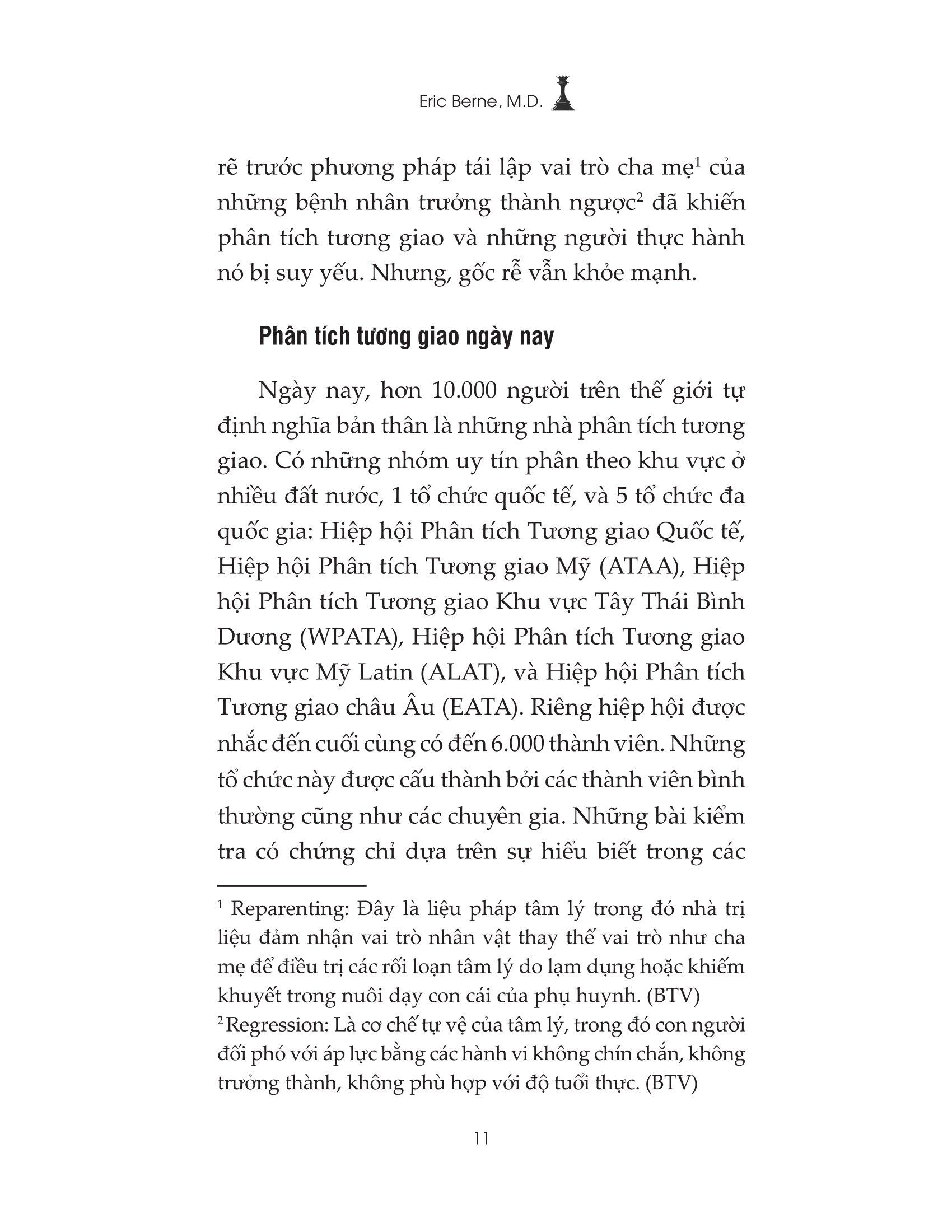 Trong cuốn sách này, bác sĩ tâm lý Eric Berne sẽ tiết lộ tâm lý đằng sau những tương tác của chúng ta với những người xung quanh đồng thời vạch trần những thủ đoạn vô thức quen thuộc mà mỗi người chúng ta làm để đạt được điều m.ình muốn từ người khác. Bất kể loại trò chơi nào chúng ta đang chơi, nó thường mang tính thao túng và chúng ta thậm chí không nhận ra m.ình đang chơi. Bạn sẽ nhớ lại những trò chơi kinh điển như trận chiến giữa các cặp đôi chết người “If it Wen’t For You” hoặc những trò chơi tán tỉnh như “Let's You and Him Fight”.
