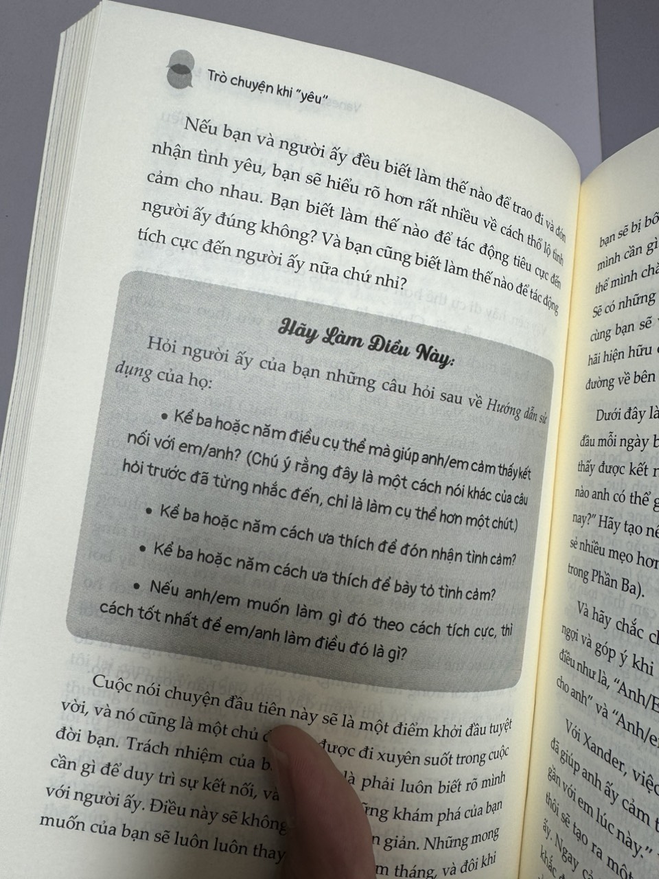 TRÒ CHUYỆN KHI YÊU Tác giả: Vanessa Marin & Xander Marin Dịch giả: Nguyễn Việt Dũng Nhà phát hành: Bách Việt Nhà xuất bản: NXB Thanh Niên *** Thông tin sách: Hình thức: Bìa