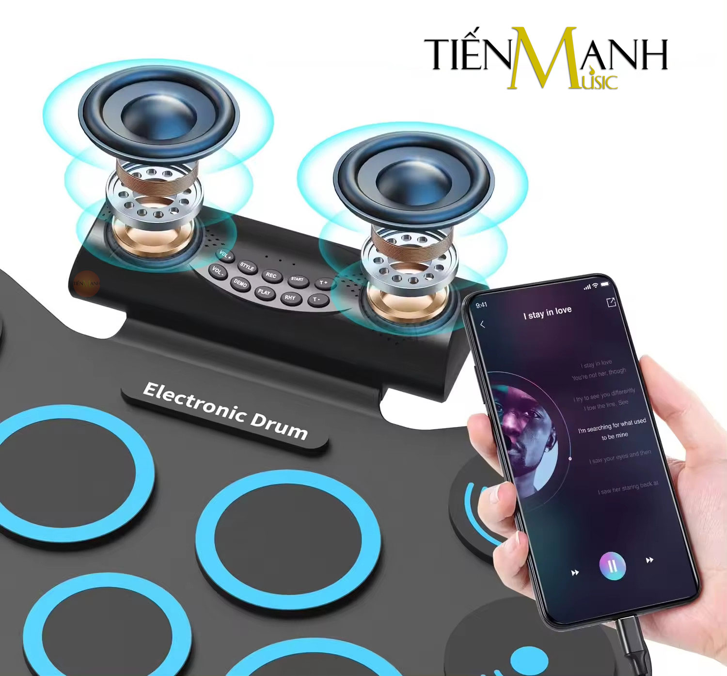THÔNG SỐ KỸ THUẬT: - Pin sạc, hỗ trợ Bluetooth để chơi trên app (đi kèm trống, có hướng dẫn tiếng việt), và phát nhạc lên trống. - Hỗ trợ app trên ios, androi, máy