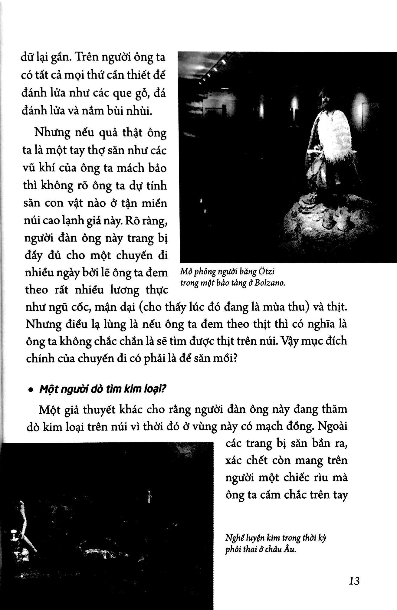 "... xác ướp của người băng Ötzi có niên đại 5.300 năm, đem theo bên mình là dao và cán mũi tên có niên đại 7.000 năm, chiếc rìu có niên đại khoảng năm 4.600 năm, một chiếc áo có niên đại 8.000 năm. Lẽ nào người đàn ông này đã sử dụng tên và áo khoác của cụ tổ nhưng lại cầm rìu của con cháu mình?..."