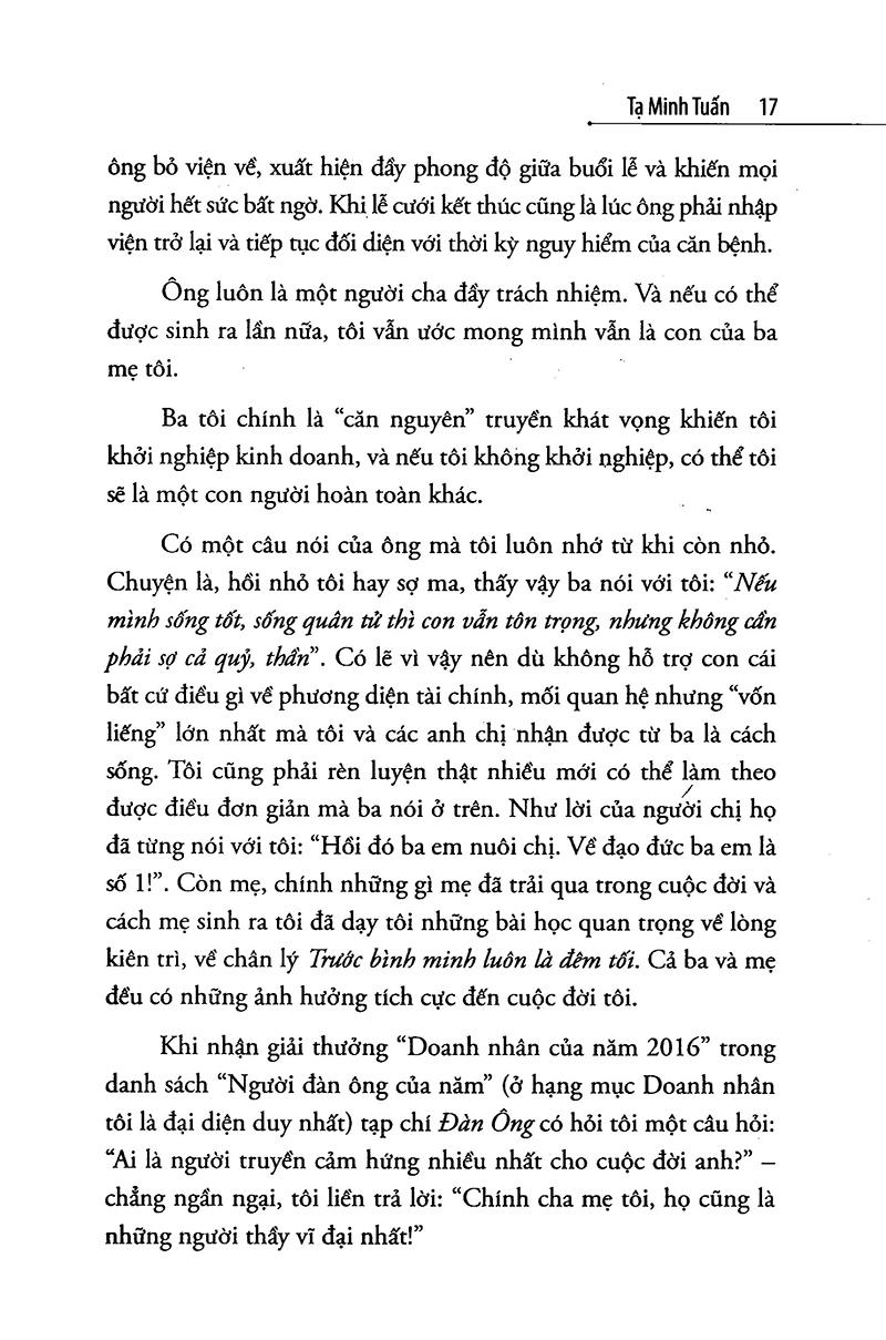Ngoài ra còn nhiều chia sẻ bổ ích, thú vị, sâu sắc về thành công, nỗi buồn, hạnh phúc khác từ chính cuộc đời tác giả, chắc chắn sẽ khiến độc giả vỡ ra nhiều điều trong cuộc sống.