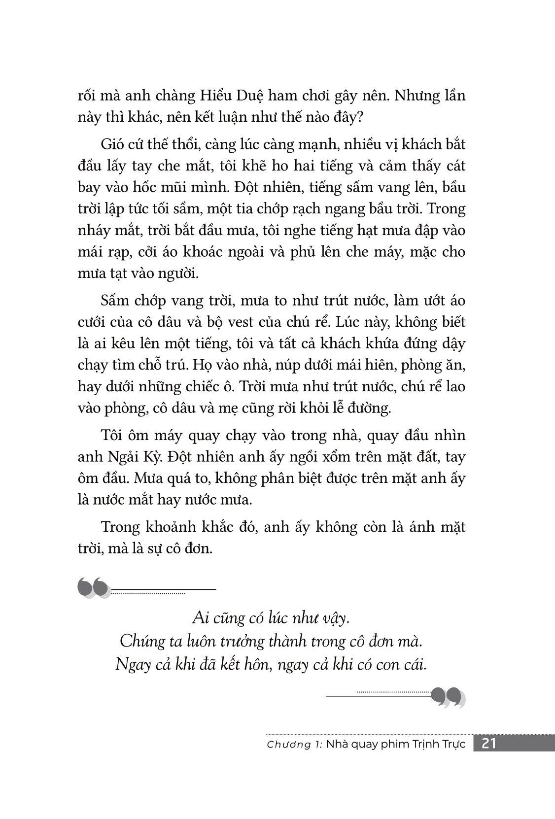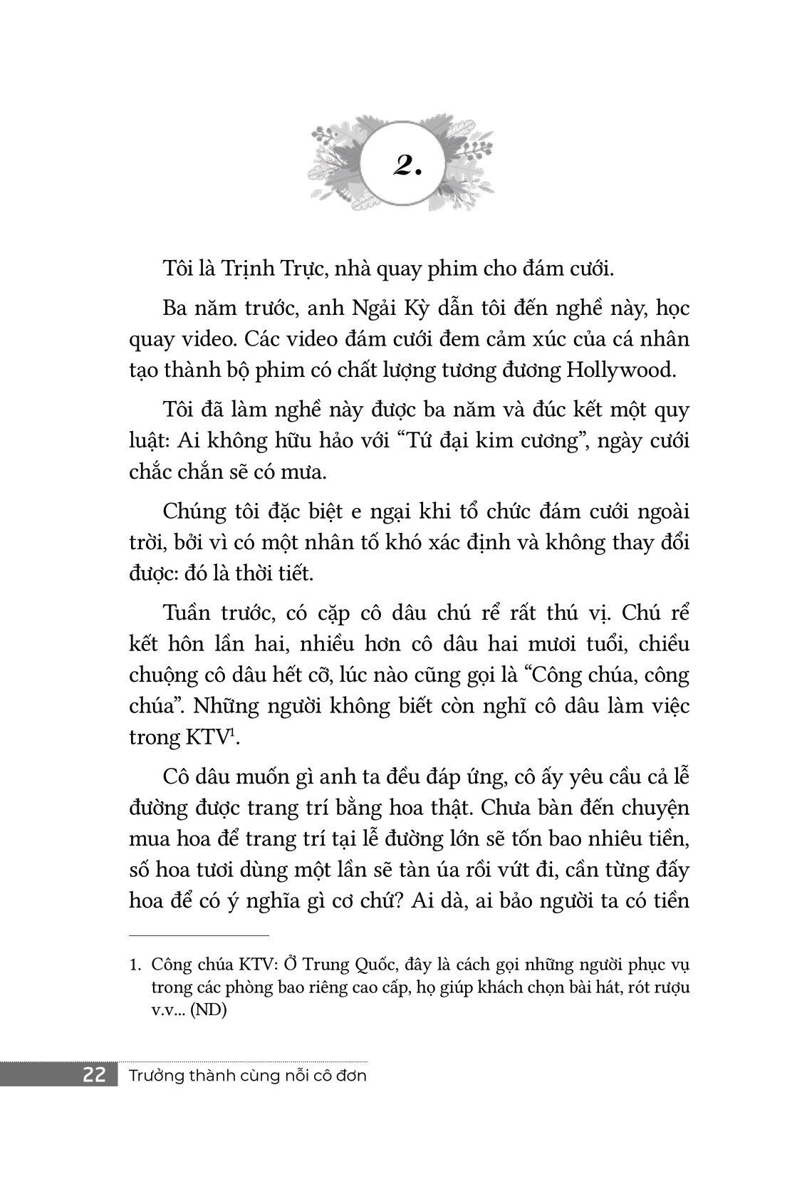 Đây là cuốn sách nói về hôn nhân và tình yêu của những người “đã từng” trẻ của thế hệ 9x. Đến một tuổi nhất định, thái độ đối với hôn nhân và gia đình lại hết sức phức tạp: Người ta hạnh phúc trong sự lo âu, đồng thời lo âu trong sự ngọt ngào của hạnh phúc.