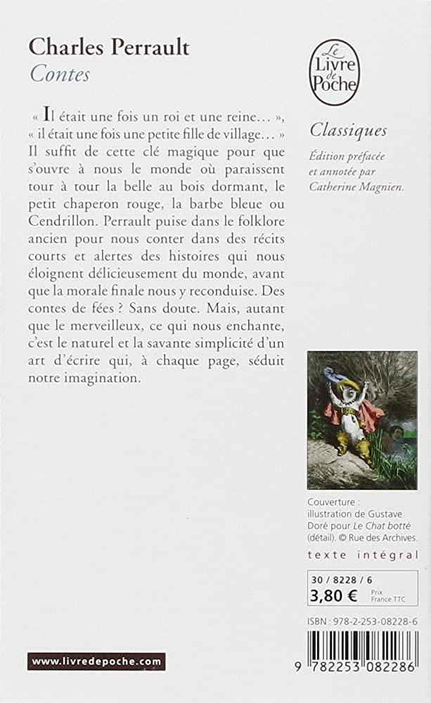 Il était une fois un roi et une ", " il était une fois une petite fille de " Il suffit de cette clé magique pour que s'ouvre à nous le monde où paraissent tour à tour la belle au bois dormant, le petit chaperon rouge, la barbe bleue ou Cendrillon. Perrault puise dans le folklore ancien pour nous conter dans des récits courts et alertes des histoires qui nous éloignent délicieusement du monde, avant que la morale finale nous y reconduise.