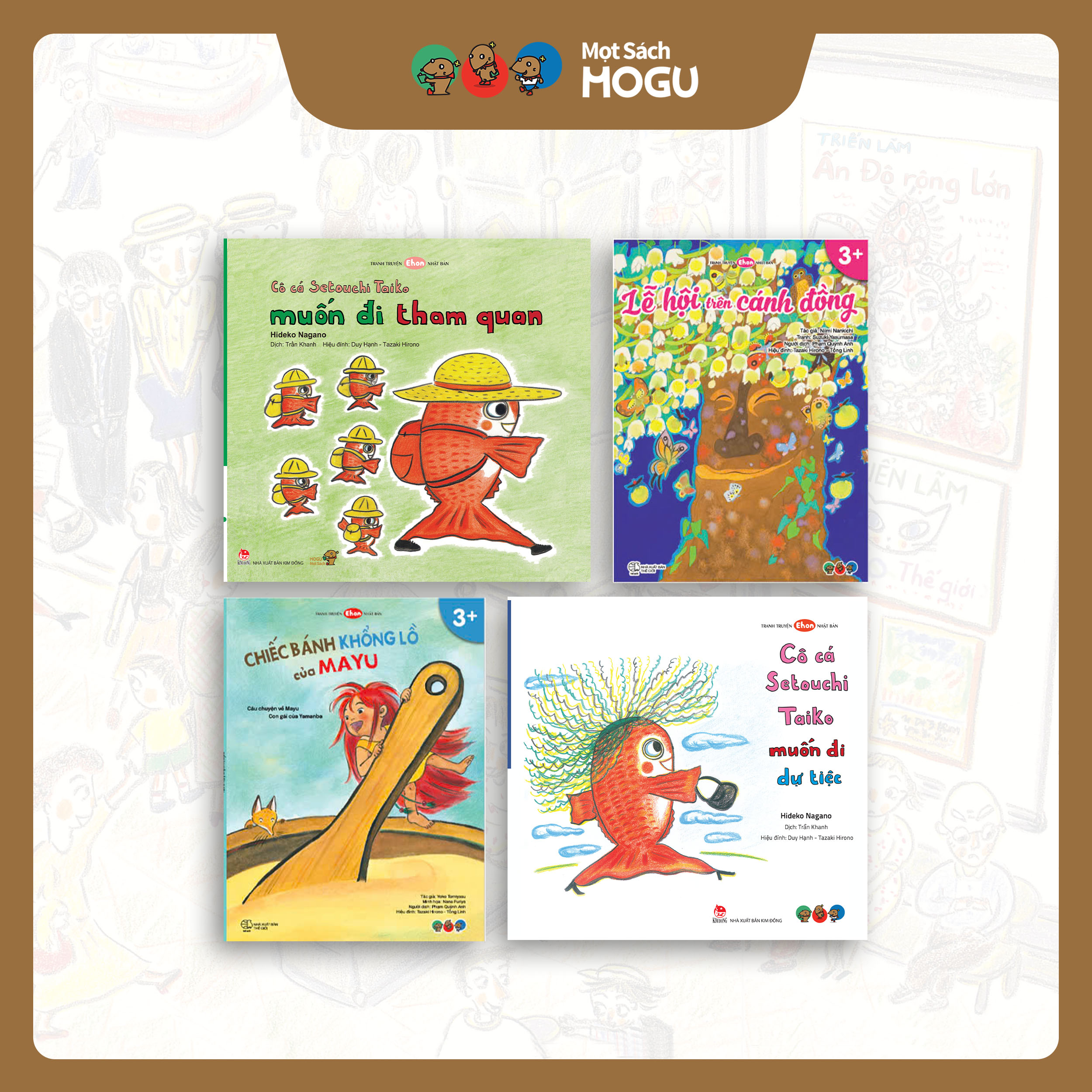- Để con có trải nghiệm gián tiếp trước nhằm tạo sự chuẩn bị tinh thần nhưng nên bắt đầu từ đâu? Trả lời nhanh chóng cho những lo lắng, trăn trở luôn thường trực đó, Combo 4 cuốn KHÁM PHÁ MÙA LỄ HỘI mở ra một thế giới tràn ngập không khí vui nhộn của những bữa tiệc quen thuộc, được tạo ra từ các chất liệu cuộc sống thực tế. Mọi câu chuyện thú vị đều dẫn dắt trẻ làm quen với các khía cạnh khác nhau của cuộc sống cũng như rèn luyện một số kỹ năng cơ bản cần thiết khi tham gia các hoạt động tập thể. CÔ CÁ SETOUCHI TAIKO MUỐN ĐI THAM QUAN - Đem tới một hành trình tham quan pha lẫn giữa sự hài hước, vui vẻ và cả một chút khó khăn, cuốn sách sẽ kích thích sự tò mò và đem tới cho bé một câu chuyện ý nghĩa đậm chất lễ hội trong từng trang sách. CÔ CÁ SETOUCHI TAIKO MUỐN ĐI DỰ TIỆC - Một câu chuyện vui nhộn với nhiều chi tiết thú vị chắc chắn sẽ mang đến những giờ đọc thoải mái cho các bé có mong muốn khám phá sâu hơn về cuộc sống xung quanh. LỄ HỘI TRÊN CÁNH ĐỒNG - Mang màu sắc lễ hội tươi vui và thông điệp sâu sắc về lòng yêu thương, sự quan tâm và khả năng lan tỏa của cái đẹp cùng sự tử tế, nuôi dưỡng cảm xúc và ý thức kết nối với thiên nhiên của trẻ. CHIẾC BÁNH KHỔNG LỒ CỦA MAYU - Biểu tượng của tinh thần kiên trì và lòng nhiệt thành trong việc thực hiện mong muốn, ước mơ cho dù có gặp bao nhiêu thử thách đi chăng nữa. CHẠM TỚI NHẬN THỨC CỦA TRẺ VỚI NHỮNG ĐIỂM ĐẶC BIỆT NỔI BẬT: