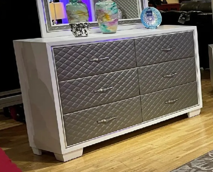 - Khung Tủ màu trắng + mặt trước ngăn kéo bọc nệm màu trắng.