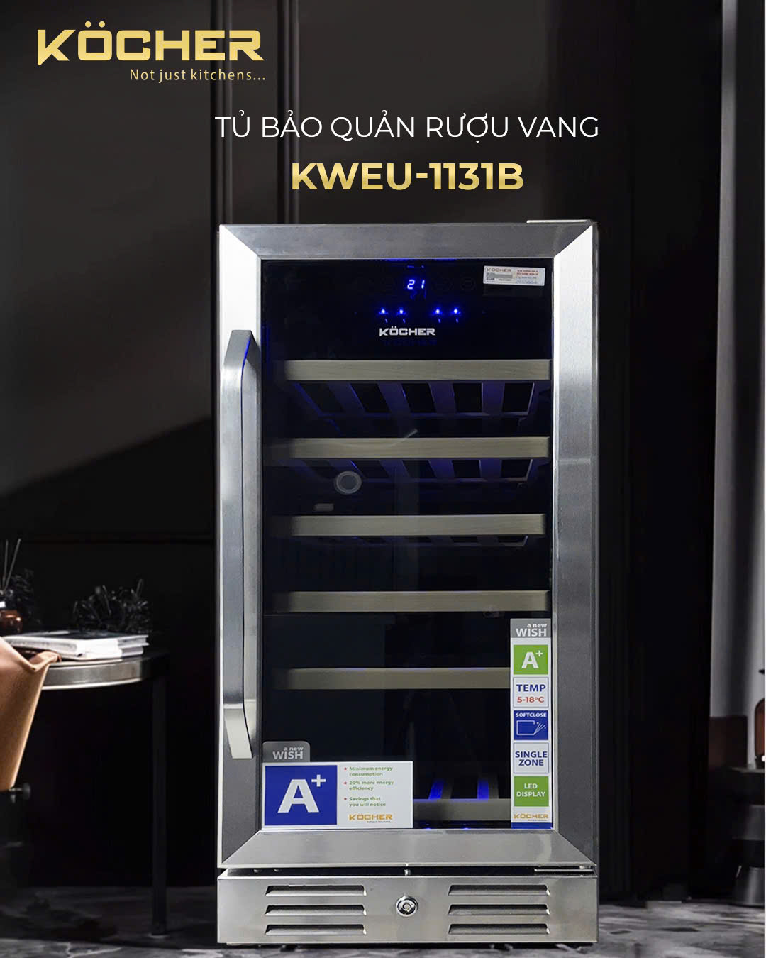 Review tủ bảo quản rượu vang Kocher KWEU-1131B có gì HOT | Kinghome.Vn