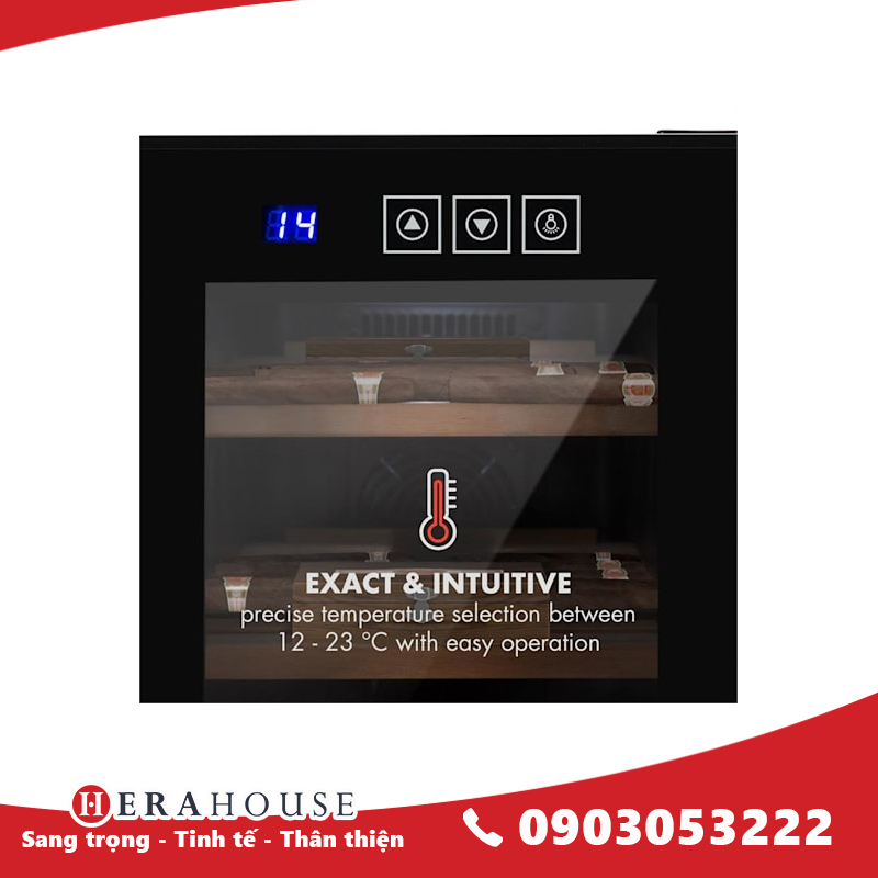 Thể tích: 23 lít . Điều chỉnh nhiệt độ bên trong từ 14 đến 20°C . Nhiệt độ môi trường lý tưởng từ 10-32 °C . Bảng điều khiển cảm ứng. . Kiểm soát độ ẩm đến 60-80% . Độ ồn: 38db . Màn hình hiển thị kỹ thuật số . Kích thước: 25x52x46 cm (rộng x cao x sâu) . Sử dụng sò nóng – lạnh để làm mát. Tủ cigar của chúng tôi hứa hẹn sẽ đáp ứng yêu cầu của những khách hàng khó tí Nhanh tay đặt hàng để có ngay những sản phẩm ưng ý với những thiết kế thời thượng.