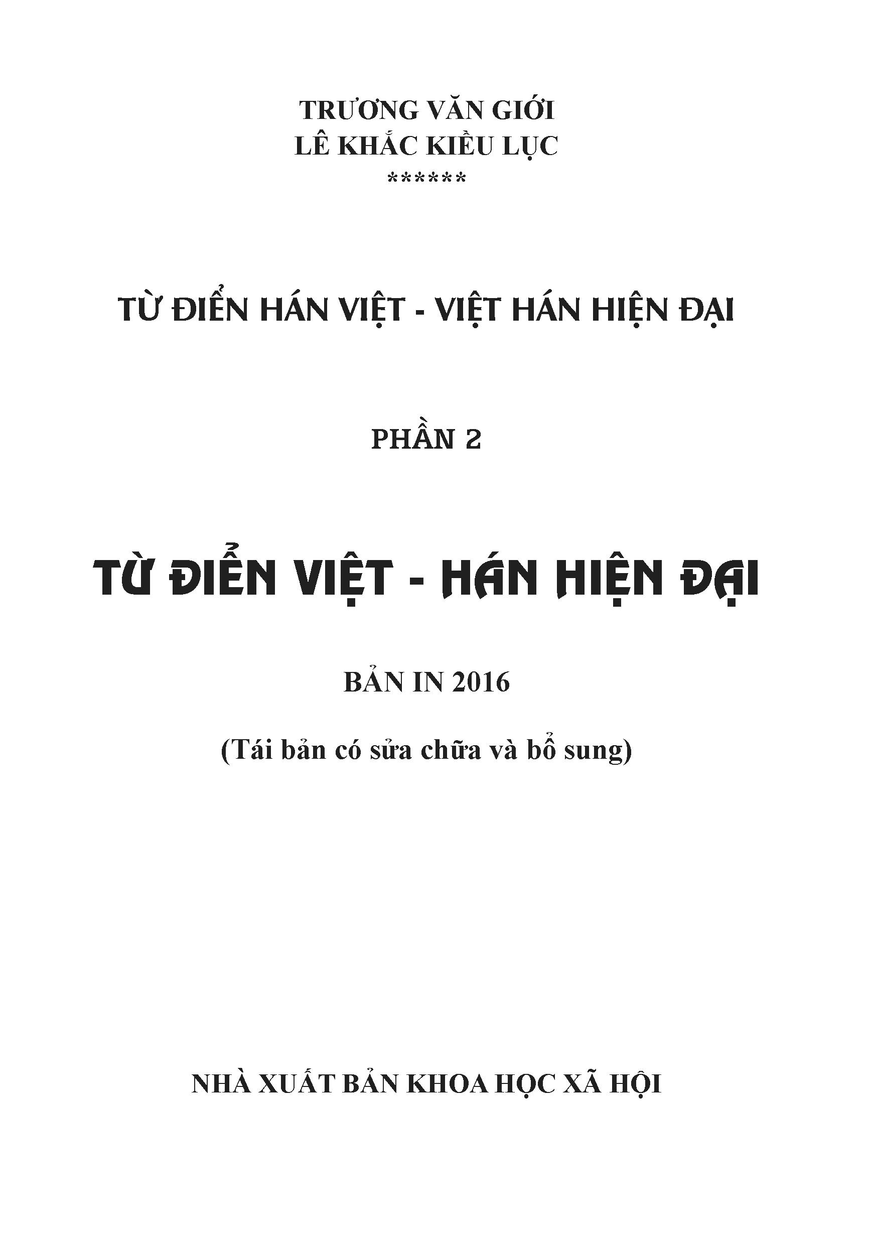 Khổ 10x19, bìa mềm, 1416 trang, in giấy trắng đẹp Để đáp ứng nhu cầu có công cụ đối chiếu hai ngôn ngữ Việt – Hán, chúng tôi đã biên soạn hai cuốn từ điển