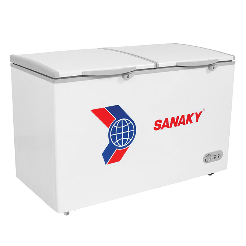 Tủ đông Sanaky 280 lít VH-3899KB thiết kế 2 cửa lùa cong bằng kính cường lực bền chắc, công nghệ làm lạnh trực tiếp và dàn lạnh bằng đồng giúp giữ lạnh thực phẩm hiệu quả,