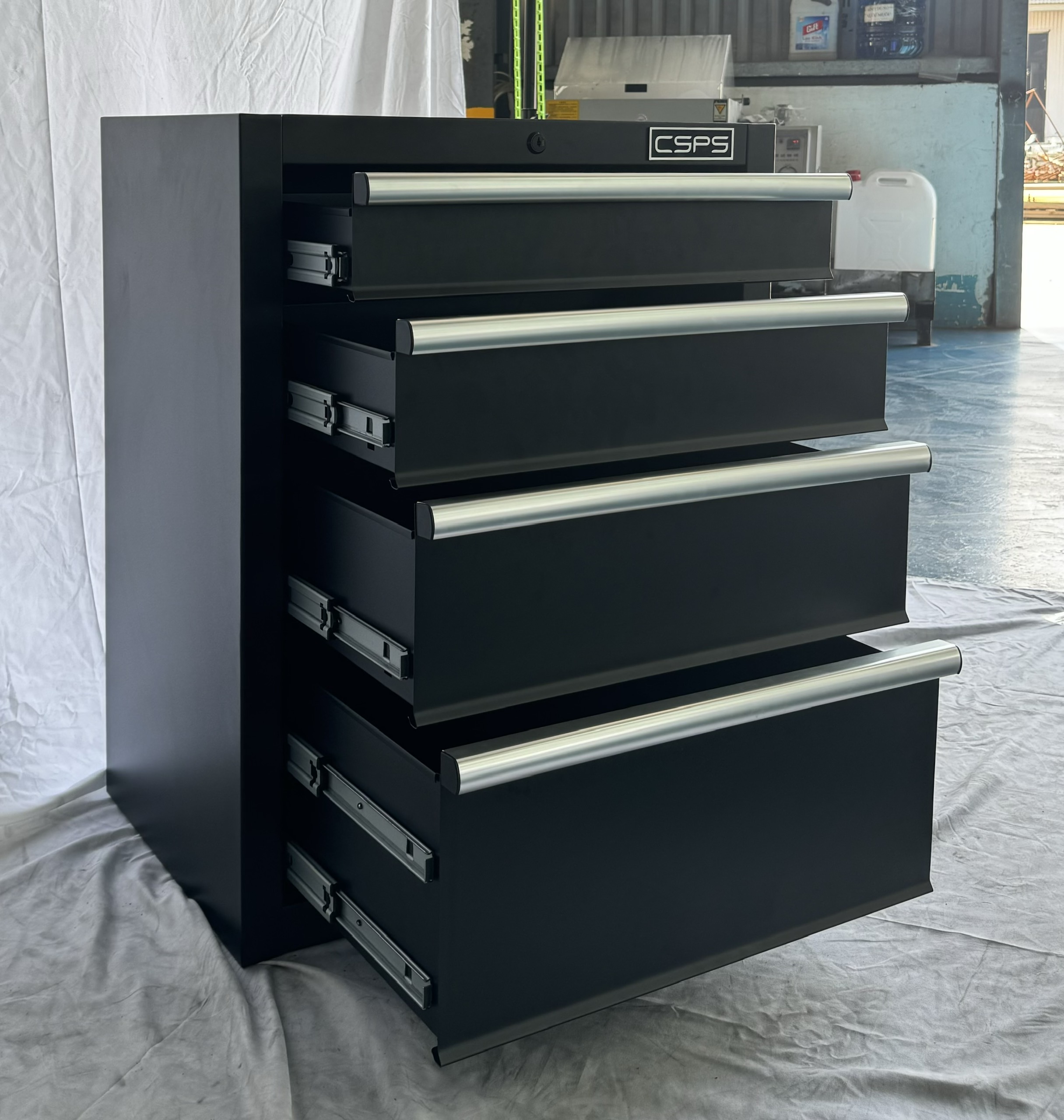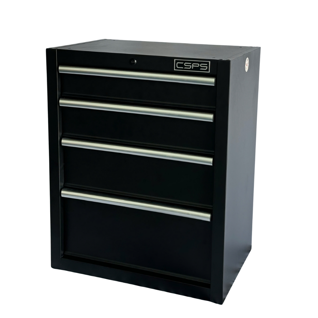 Tủ dụng cụ CSPS 84cm - 04 hộc kéo Kích thước sử dụng: 84cm Rộng x 51cm Sâu x 101cm Cao Khối lượng sử dụng: 52.9 kg Tổng chịu tải: 320 kg Ngăn kéo: 04 ngăn,