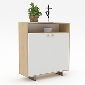 Chất liệu làm từ gỗ MFC, bề mặt phủ Melamine chống thấm, dễ dàng lau chùi Khung tủ màu nâu sẫm vân gỗ walnut kết hợp cánh tủ màu trắng hài hòa Thiết kế thông