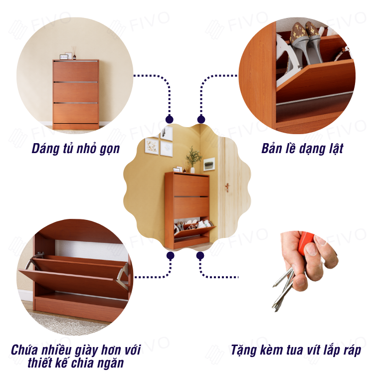 ✨Tủ Giày Gỗ Cánh Lật Thông Minh FIVO FS55 Gỗ Chống Ẩm, Tiết Kiệm Không Gian, Sức Chứa Lớn, Dễ Dàng Lắp Đặt