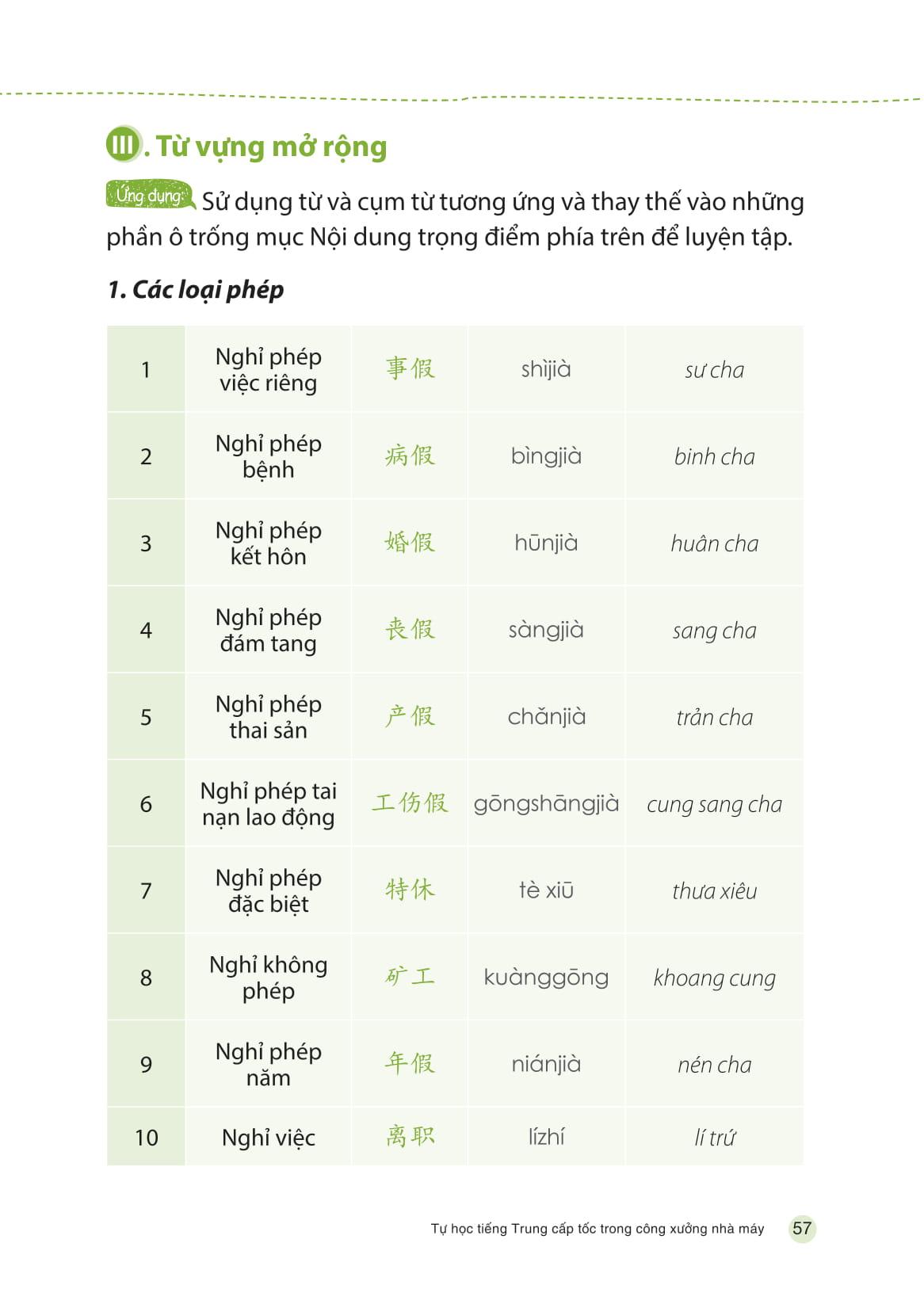 Cuốn sách “Tự học Tiếng Trung cấp tốc trong công xưởng, nhà máy” ra đời cũng vì mục đích đó. Với các chủ đề đa dạng, từ giao tiếp thông dụng tới giao tiếp theo chuyên ngành, cuốn sách sẽ phù hợp cho nhiều đối tượng khác nhau, đặc biệt là những người bận rộn muốn học tiếng Trung có trọng điểm, tiết kiệm thời gian và có thể ứng dụng ngay trong công việc.