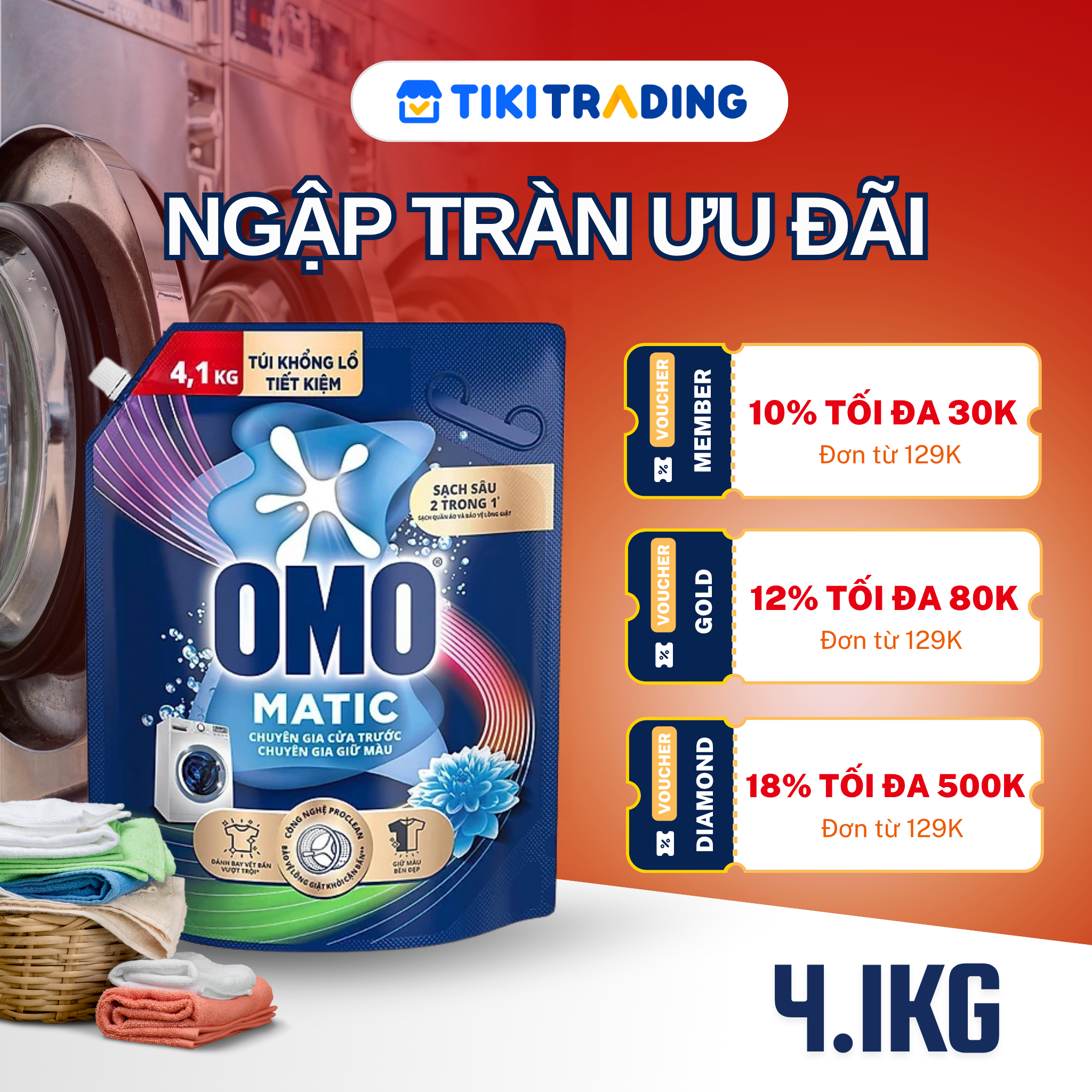Túi Nước Giặt Omo Matic Cho Máy Giặt Cửa Trước Bền Màu Sau 100 Lần Giặt 3.6Kg giá : 176.000 đ