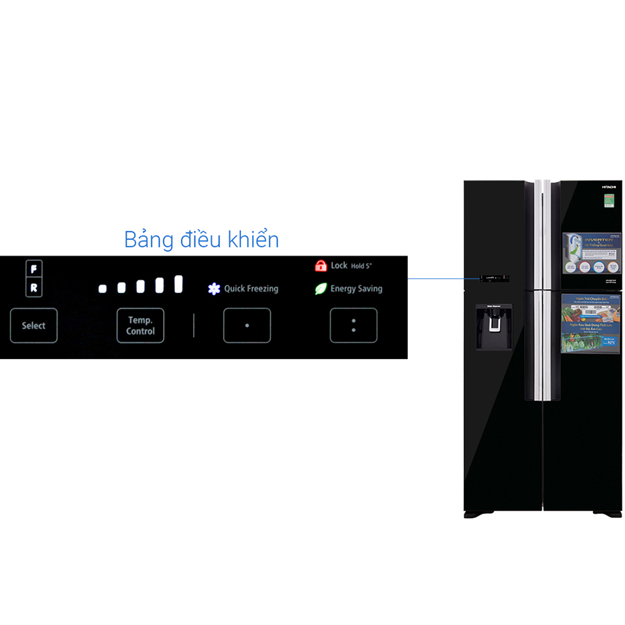 Tủ Lạnh Inverter Hitachi R-FW690PGV7-GBK được thiết kế theo kiểu side by side hiện đại với 4 cửa và tích hợp vòi lấy nước ngoài cánh tiện dụng, giúp người dùng dễ dàng thao tác sử dụng kết hợp với gam màu đen tinh tế mang đến vẻ đẹp sang trọng cho không gian nội thất nhà bạn. Hơn nữa, chiếc tủ lạnh Hitachi có dung tích lên đến 540 lít sở hữu không gian lưu trữ vô cùng rộng rãi, phù hợp với những gia đình 5 - 7 người.