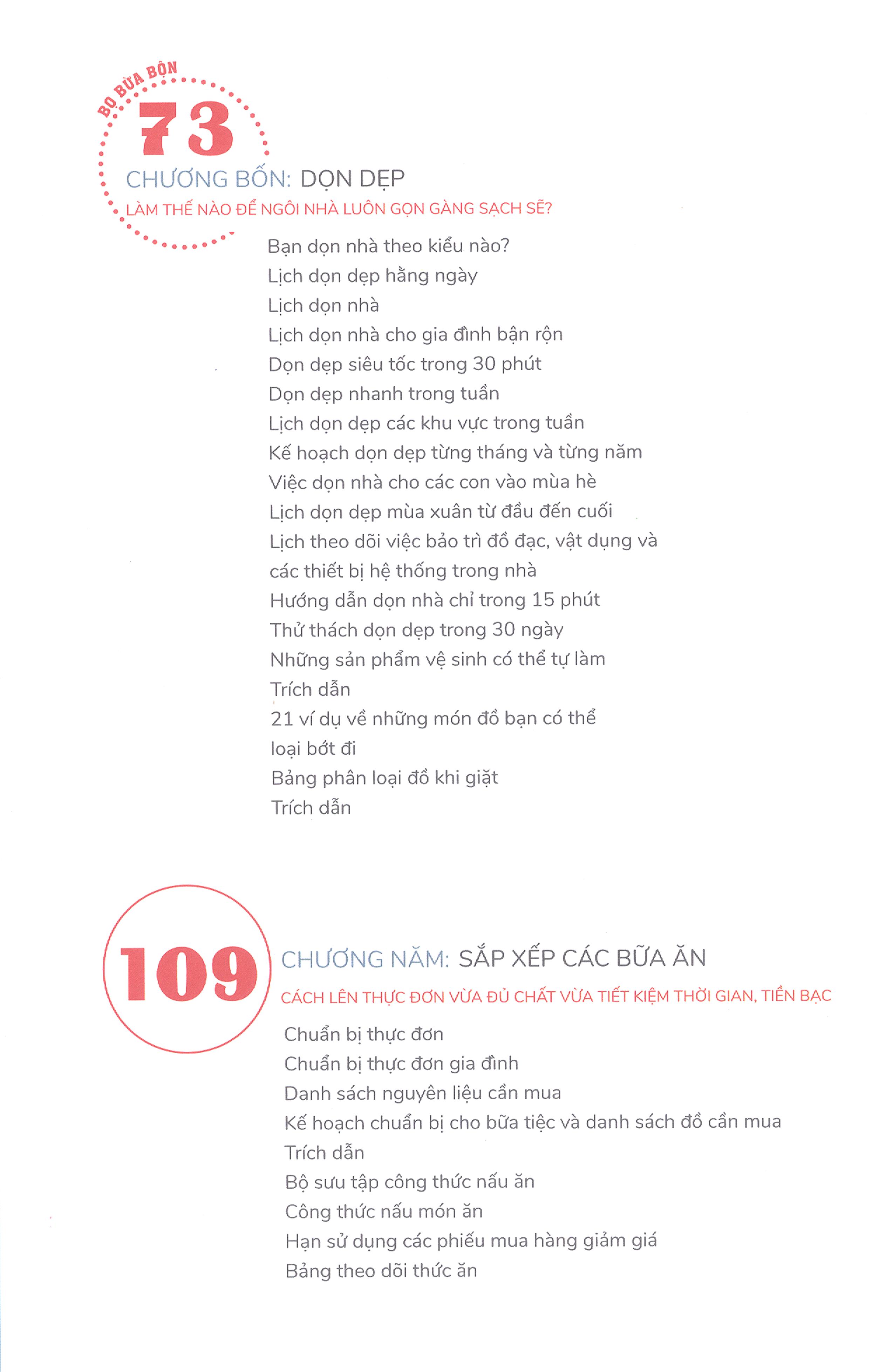 Từ lộn xộn đến chỉn chu sẽ cho bạn câu trả lời. Với hơn 100 bảng biểu và danh sách hữu ích có thể áp dụng trong nhiều lĩnh vực từ dọn dẹp nhà cửa cho đến quản lý thời gian, tài chính, cuốn sách không chỉ mang lại những lời khuyên, mẹo vặt hữu ích mà còn cung cấp công cụ trực tiếp để bạn thực hành và biết cách quản lý cuộc đời mình.