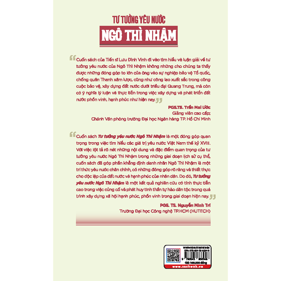 Cuốn sách "Tư tưởng yêu nước Ngô Thì Nhậm" của tác giả Lưu Đình Vinh là một công trình đặc sắc, mang nhiều ý nghĩa. Đây là chuyên luận viết theo thể triết - sử về một tư tưởng lớn của Ngô Thì Nhậm - t...