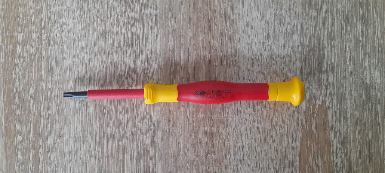 English name:Screwdriver SoftFinish electric Tiêu chuẩnĐược thử nghiệm theo IEC 60900.Ứng dụng Đối với công việc trong khu vực của các bộ phận sống lên đến 1.000 V AC. Size: 2,5 mm Chiều dài: 179