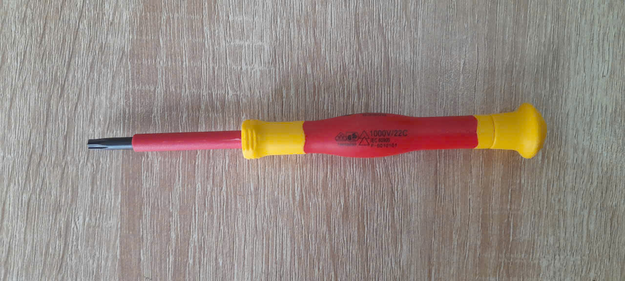English name:Screwdriver SoftFinish electric Tiêu chuẩnĐược thử nghiệm theo IEC 60900.Ứng dụng Đối với công việc trong khu vực của các bộ phận sống lên đến 1.000 V AC. Size: 2,5 mm Chiều dài: 179