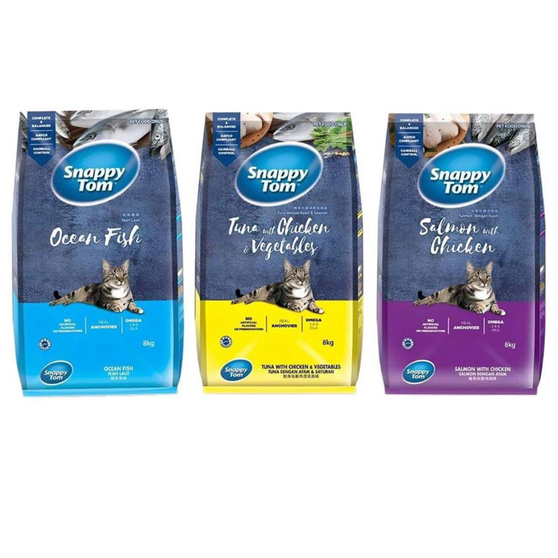 Hạt khô cho mèo Snappy Tom được sản xuất theo tiêu chuẩn AAFCO với thành phần bổ sung Omega 3, 6 giúp cho da và lông chắc khỏe đồng thời bổ sung đạm thủy phân giúp ngăn ngừa dị ứng và hấp thu hiệu quả. Ngoài ra, hạt khô Snappy Tom còn được trộn kèm cá cơm thật sấy khô để cải thiện khẩu vị giúp các bé ngon miệng hơn mà không cần phải bổ sung mùi nhân tạo.