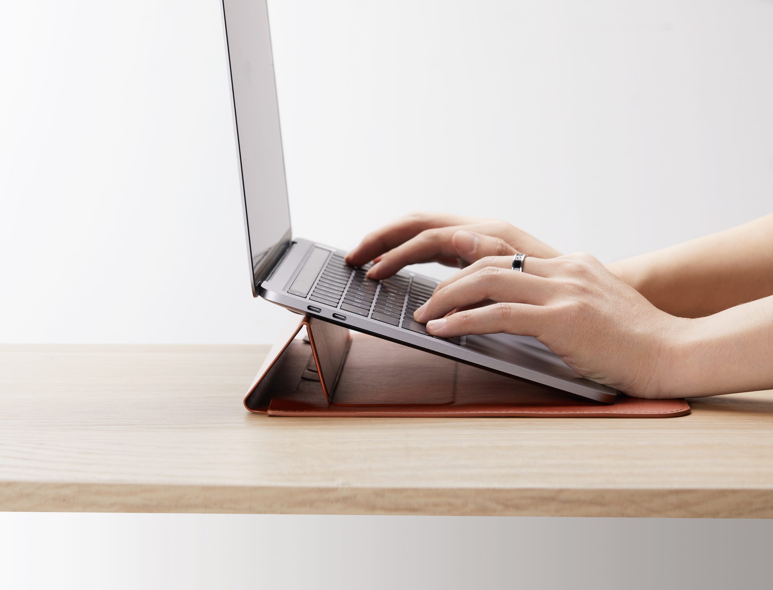 Phần nắp lật lên và biến thành giá đỡ cho Macbook tiện dụng, mang lại cho bạn trải nghiệm xem và gõ 15 độ dễ chịu bất kể bạn ở đâu.