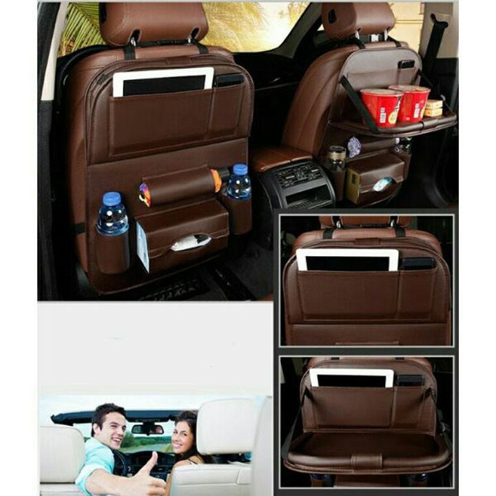 Túi da đựng đồ đa năng treo sau ghế Ô tô, Xe hơi – Tích hợp bàn ăn tiện lợi. Sản phẩm vừa là túi đựng đồ vừa có tác dụng mở ra thành chiếc