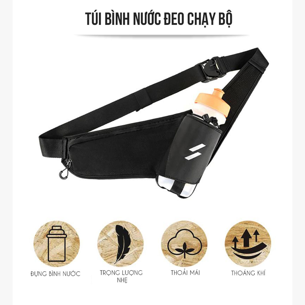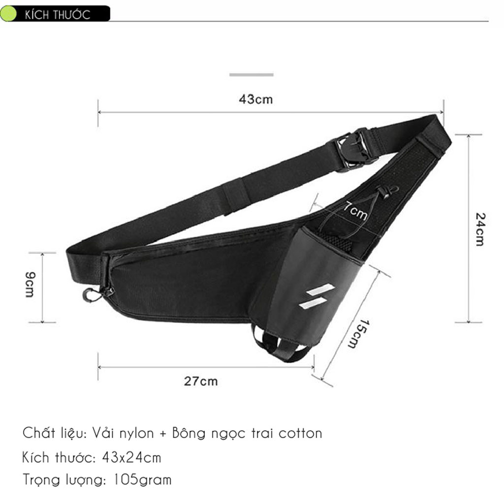 Túi Đeo Hông Đạp Xe Đạp/ Đai Chạy Bộ Có Ngăn Đỡ Bình Nước Và Ngăn Chứa Nhỏ Thoáng Khí MaiLee   Thiết kế thời trang, phù hợp với chạy bộ/ đạp xe đường dài, Giá đựng bình nước giúp bạn không phải lo lắng về giải nhiệt trong quá trình tập luyện. (Chai nước không bao gồm)   Mô tả: Chất liệu: Vải nylon + Polyester với thun lưới co giãn + Cotton thoáng khí Dây đai: Nylon có khả năng chịu mài mòn cao Vòng eo: Kích thước từ 62-113cm (có thể điều chỉnh bằng dây rút) Phù hợp với: Chạy bộ /chạy xe đạp/ đi bộ đường dài/đi bộ v. v. LOGO PHẢN QUANG BAN ĐÊM: Hai vạch phản quang trên túi có thể bảo vệ an toàn cho bạn khi chạy vào ban đêm CÓ ĐAI ĐIỀU CHỈNH: thắt lưng dây đai có thể điều chỉnh theo vòng bụng từ 62-113cm. Phù hợp với nam giới và phụ nữ với tất cả các kích cỡ khác nhau. Chất liệu cotton dày dặn với thiết kế lưới thoáng khí và dây thun co giãn giúp cố định bình nước tránh va chạm đến cơ thể khi vận động. THIẾT KẾ ĐA NĂNG: phù hợp dành cho nam và nữ với tất cả các kích cỡ khác nhau. Là phụ kiện hoàn hảo cho đi bộ đường dài, chạy bộ, leo núi, đi xe đạp, thể dục, thể thao, giải trí và các hoạt động du lịch.