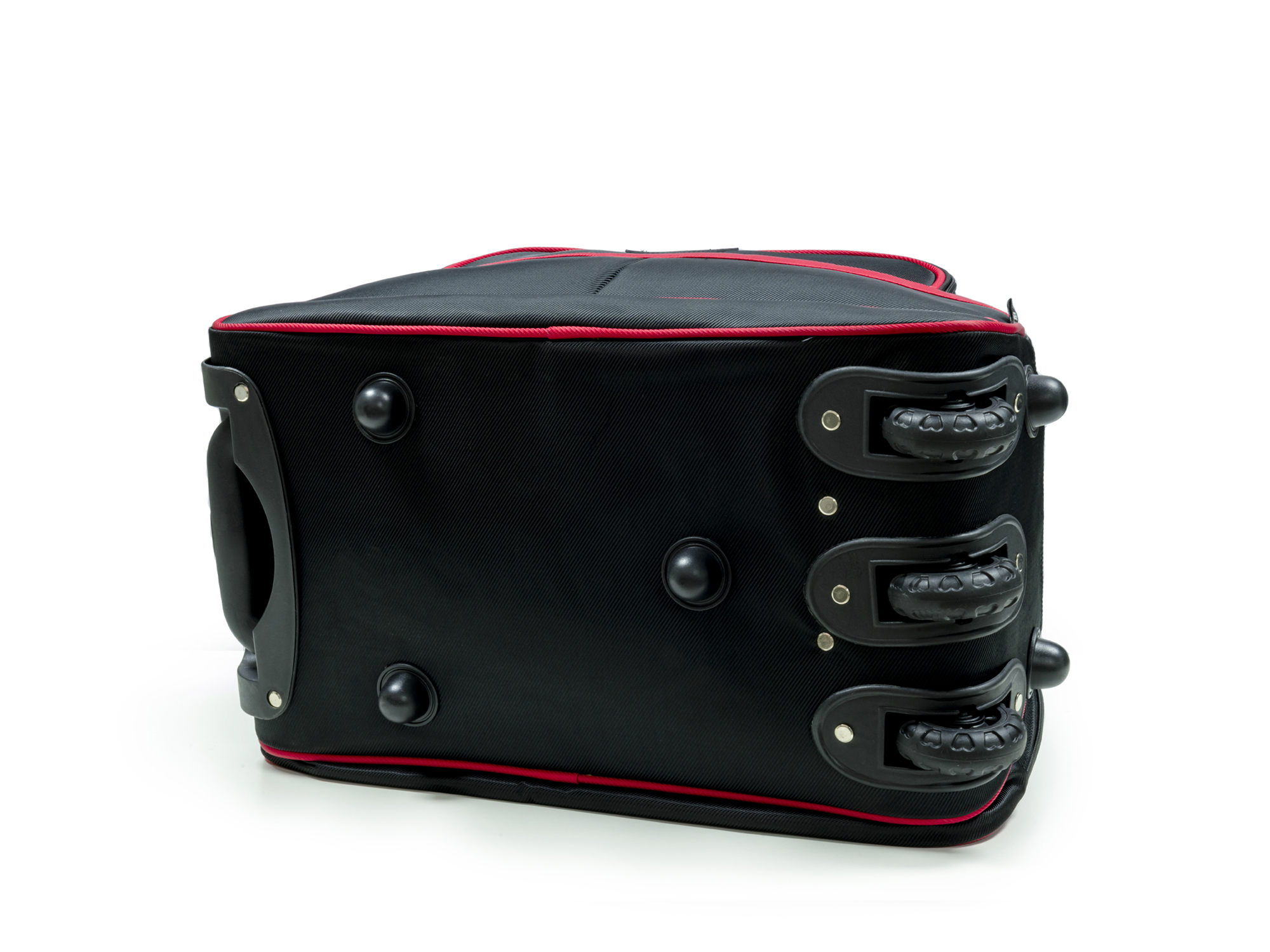 Vali Kéo Du Lịch đen Phối đỏ Có Nắp - 22 Inch được thiết kế từ chất liệu vải Polyester có độ bền cao, chống thấm nước tối ưu giúp bảo vệ hành lý bên