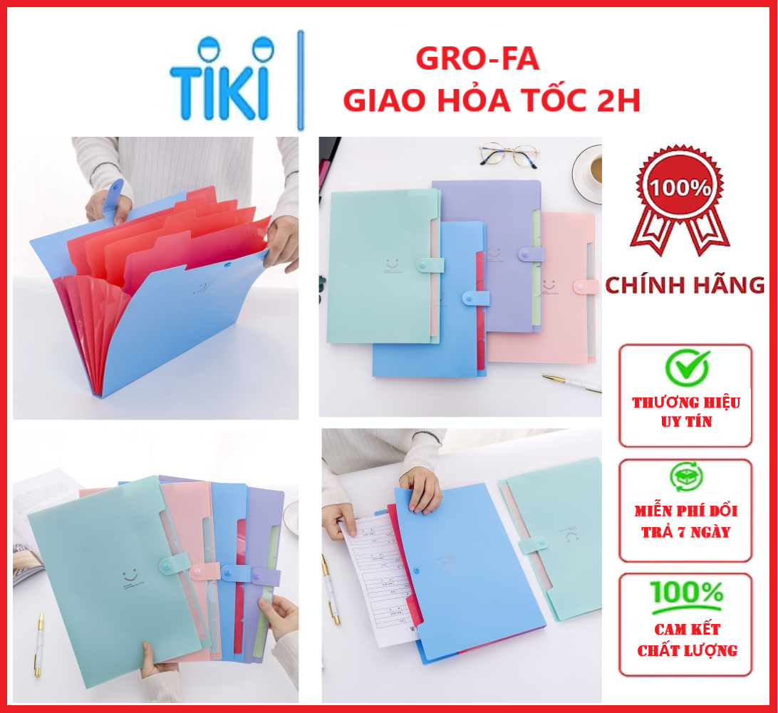 #### Bìa đựng hồ sơ, tài liệu Kích thước: 32.5x24 cm Trọng lượng: 250g Có 6 màu để lựa chọn, các màu sắc tươi sáng, trẻ trung Bìa hồ sơ có nhiều ngăn để đựng,