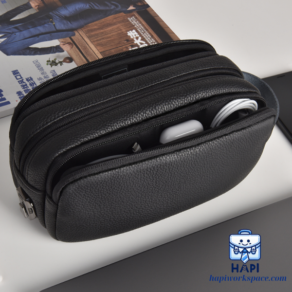 Chất liệu bền bỉ làm từ da PU không chỉ chống nước, bảo vệ thiết bị tốt mà còn tạo vẻ ngoài sang trọng Phù hợp để lưu trữ và tổ chức các phụ kiện