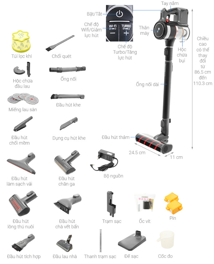 Lưu ý: - Sản phẩm chỉ sử dụng cho máy hút bụi cầm tay không dây DAMAS XC628 - Thường xuyên vệ sinh bằng cách rửa sạch và PHƠI KHÔ sau đó mới sử dụng