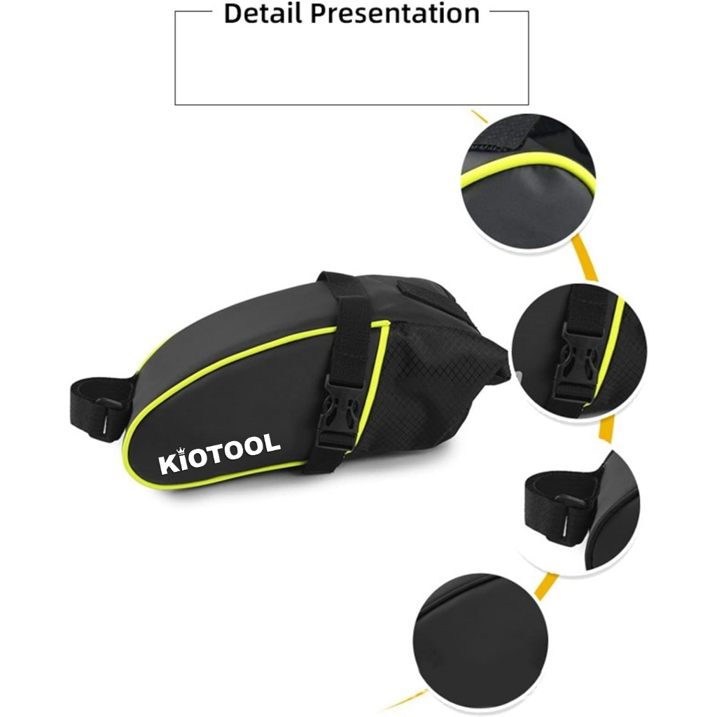 Túi treo xe đạp sau yên xe Kiotool nhỏ gọn Được làm bằng chất liệu vải PVC, không thấm nước, chắc chắn và bền. Dễ dàng gắn vào yên xe hoặc tháo ra bằng dải.