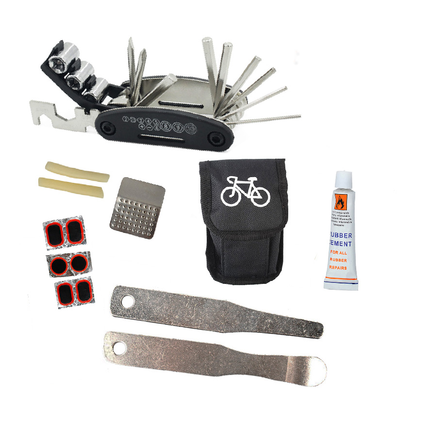 Túi Vá Săm Lốp Xe Đạp Sửa Chữa Đa Năng 10 in 1 Mini Khẩn Cấp (Bản nâng cấp có túi và Thanh nạy bằng kim loại) MaiLee