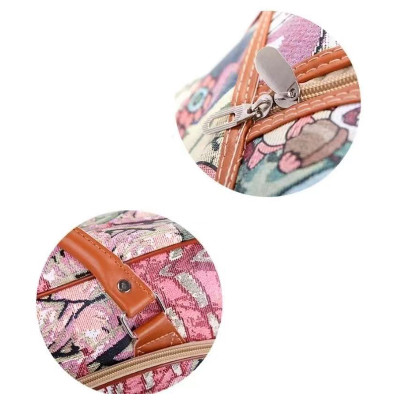 Khóa kéo bền bỉ với quai xách chất liệu da sợ tổng hợp chắc chắn và sang trọng Nhiều ngăn đựng tiện dụng cho các phụ kiện nhỏ, bố trí thông minh, đựng được đầy