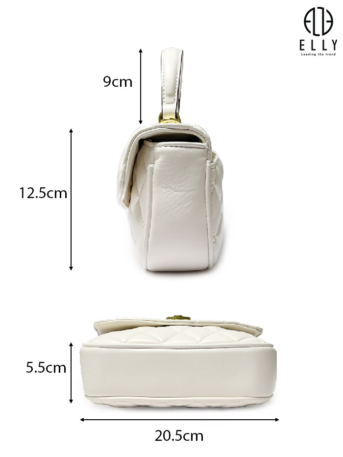– Thương hiệu: ELLY. – Sản xuất: Trung Quốc (theo tiêu chuẩn chất lượng của thương hiệu ELLY). – Màu sắc: Đen, trắng. – Kích thước: 20,5 x 12,5 x 5,5 (Chiều ngang x chiều dọc x độ dày). – Chất liệu: Da tổng hợp cao cấp. – Kiểu dáng: Túi đeo chéo, xách tay, đeo vai. – Công năng: Đựng điện thoại, ví, đồ dùng cá nhân, bút, sổ tay nhỏ,.. – Bảo hành: 03 tháng (với lỗi do sản xuất).