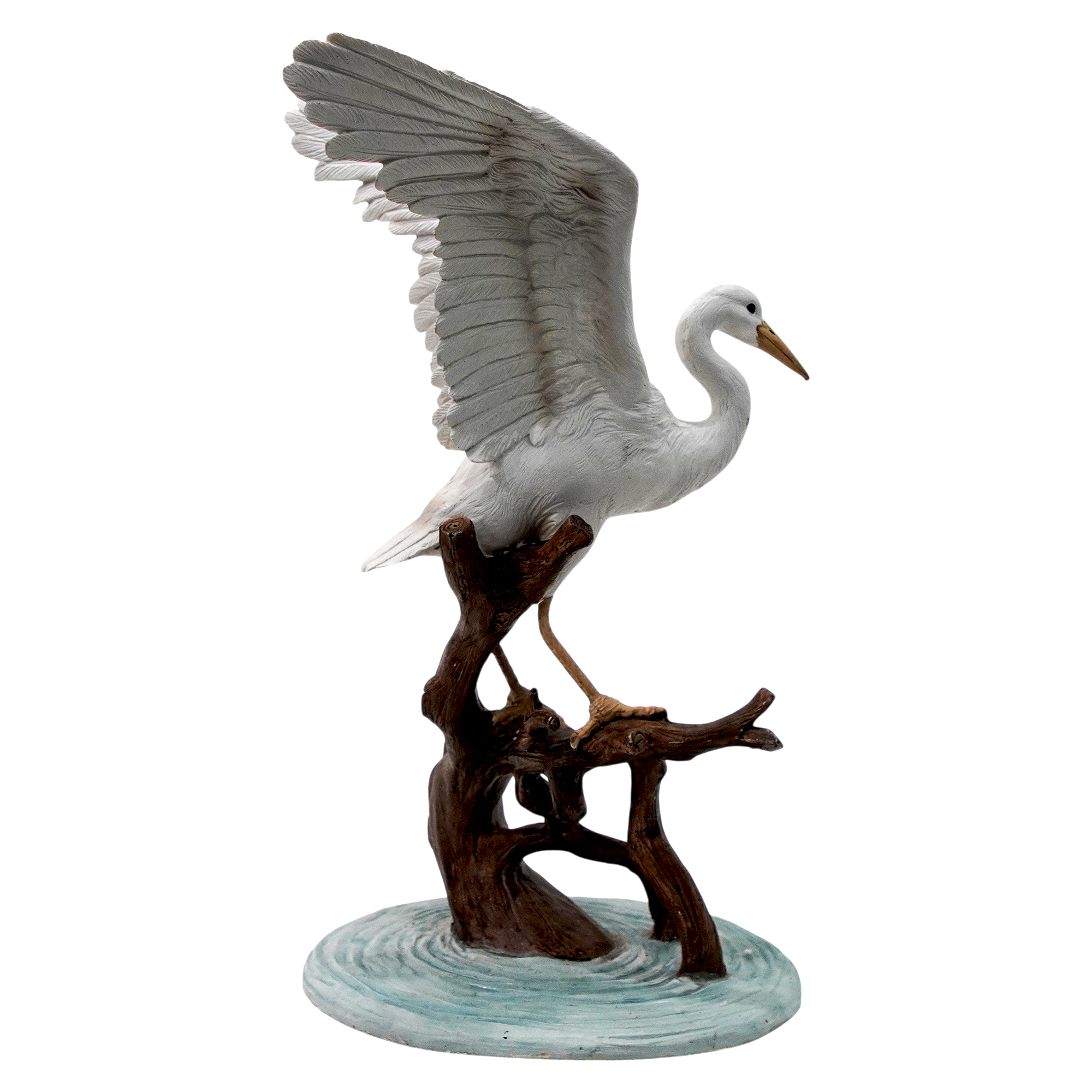 Tên sản phẩm : Tượng Chim Heron Nhựa Thuỷ Tinh HELEN Màu Trắng W30.8xD27.4xH46Cm