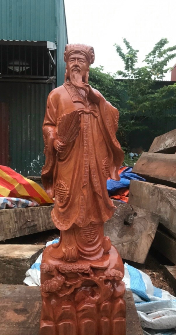_ Tượng khổng minh được trạm khắc vô cùng tỉ mỉ ,tinh sảo kỳ công .Đi hầu hết tất cả mọi chi tiết góc ngách của tượng đều được gọt tỉa ,chỉnh sửa cực kỳ sắc nét hoàn toàn bằng tay thủ công .Đồng thờ tượng được kiểm định kỹ lưỡng ,khắt khe như cho vào thẩm sấy cho gỗ khô kiệt .Mục đích trống dập nứt vênh mo mối mọt .Kết hợp với trà nhám ,đánh giấy giáp nhiều nước ,sờ mát lạnh .Song cho vào phun lót làm bóng mờ ,để giữ lại mầu sắc vân gỗ tự nhiên .Tượng khổng minh được làm và hòan thiện ,do bàn tay khối óc tài hoa .Từ những người thợ giàu kinh nghiệm ,cũng như tay nghề cao trong làng nghề truyền thống .Chính vì thế tượng khổng minh bằng gỗ hương đã đáp ứng đầy đủ mọi tiêu trí cần thiết như ( Đẹp bền rẻ ) Thẩm mỹ nghệ thuật với chất lượng tuyệt vời