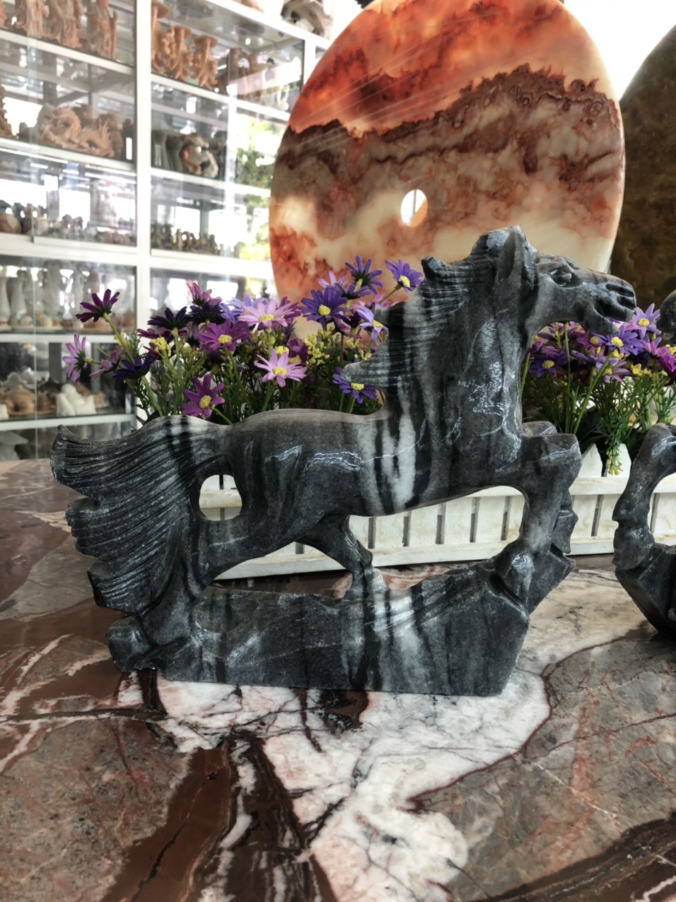 ✨Tượng Ngựa phong thủy rước công danh tài lộc đá cẩm thạch vân đen để bàn - Dài 25 cm