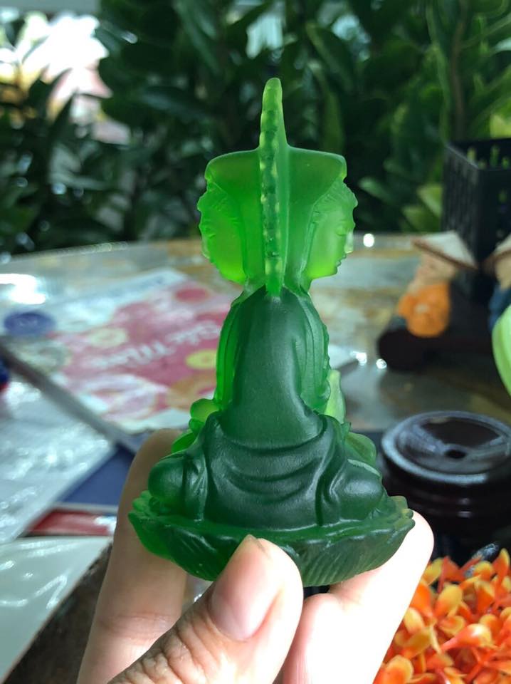 💖💖TƯỢNG PHẬT BÀ QUAN ÂM 2 MẶT ĐÁ LƯU LY ĐỂ TRONG XE HƠI hoặc BÀN cao 10cm đk 6cm - SUNNY Q8