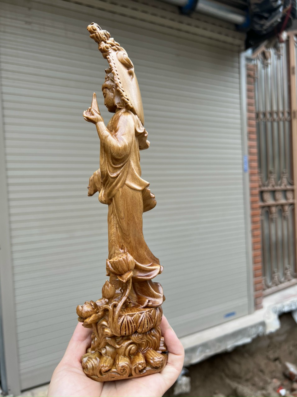 ✨Tượng phật bà quan âm bồ tát bằng gỗ bách xanh thơm nức kt cao 30×8×9cm