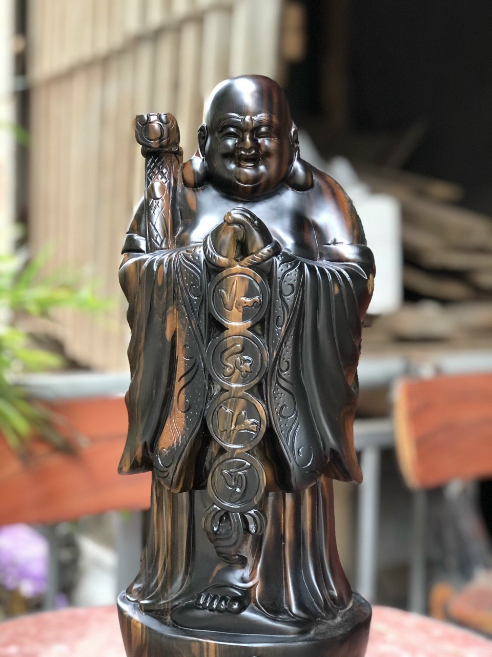 ✨Tượng phật di lặc chúc phúc bằng gỗ mun kt cao 60×20×15cm