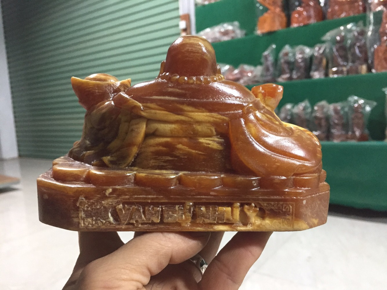 Mua tại TiktokTượng phật di lặc dâng tiền vàng được làm bằng chất liệu gỗ huyết long liền khối tự nhiên 100% Kích thước 15×9×9cm _ Tượng phật di lặc dâng tiền vàng được trạm khắc tỉ mỉ tinh sảo kỳ công .Đi hầu hết tất cả mọi chi tiết góc ngách nội dung hoa văn của tượng đều được ngọt tỉa chỉnh sửa hoàn toàn bằng tay thủ công .Đồng thời tượng được kiểm định kỹ lưỡng như cho vào thẩm sấy cho gỗ khô kiệt .Mục đích trống dập nứt vênh mo mối mọt .Kết hợp với trà nhám đánh giấy giáp nhiều nước cho sạch sẽ ,sờ mát lạnh ,Rồi cho vào phun lót làm bóng mờ để giữ lại mầu sắc vân gỗ tư nhiên .Tượng được làm và hoàn thiện do bàn tay khối óc tài hoa ,Từ những người thợ giàu kinh nghiệm ,Cũng như tay nghề cao trong làng nghề truyền thống