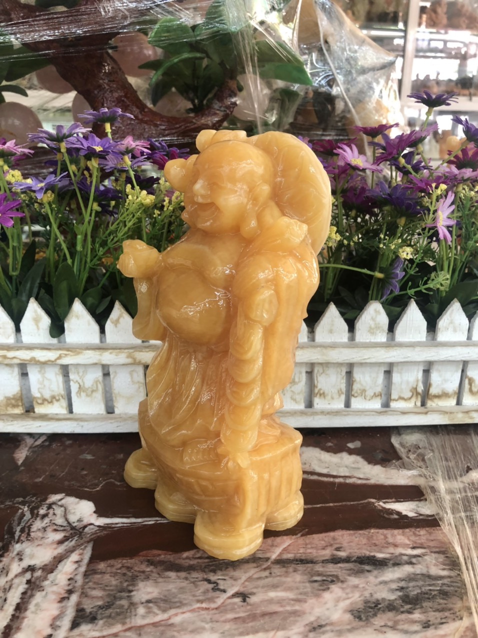 Mua tại TiktokChất liệu: Đá ngọc hoàng long Kích thước: Dài 10 cm x Rộng 6,5 cm x Cao 20 cm Khối lượng: 2 kg Hình ảnh tượng Di Lặc không còn xa lạ, nhưng vẫn có nhiều người thường hay nhầm lẫn Phật Di Lặc với Thần Tài. Phật Di Lặc thường gắn liền với hình ảnh tươi cười, hiền hòa, hoan hỉ, dáng bệ vệ, bụng căng, bóng, ngực phanh, thân hình thấp tròn đầy. Với hình ảnh này, Phật Di Lặc vốn được coi là biểu trưng của sự no ấm, đủ đầy và mộtcuộc sống tươi vui. Vị trí đặt: Để bàn làm việc, phòng khách, trưng bày, bàn học, bàn thờ thần tài, cửa hàng kinh doanh, két sắt, quà tặng ý nghĩa.