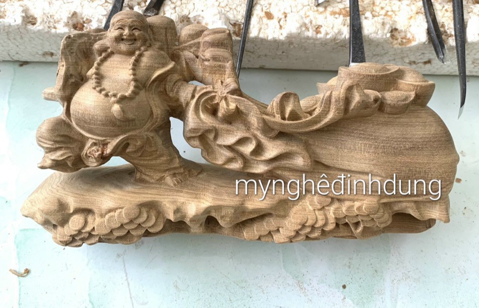 Tượng Phật Di Lặc Gỗ Ngọc Am liền khối thơm nức mũi, rộng 68 cao 35 sâu 19 cm, giá xưởng 3,8tr