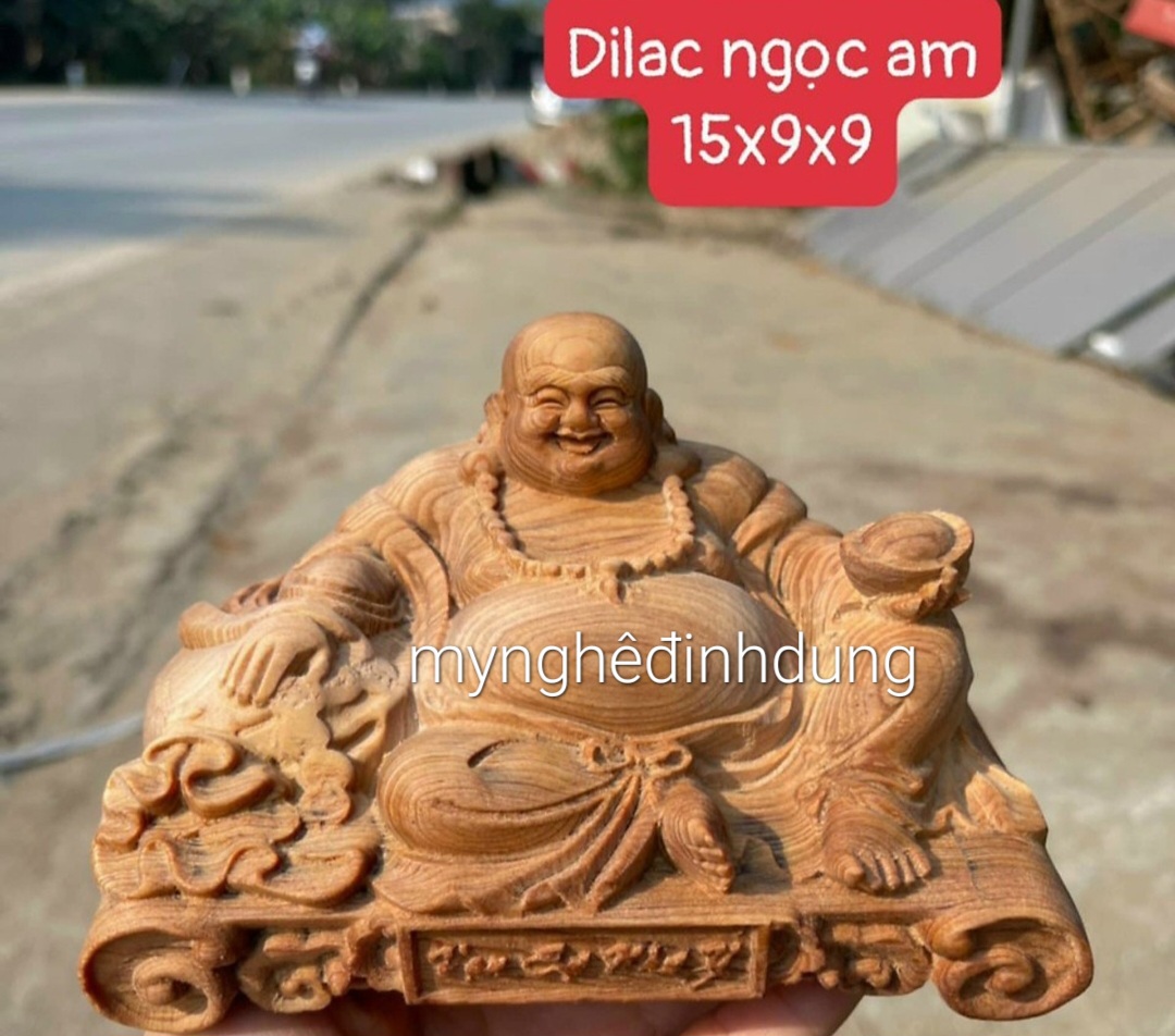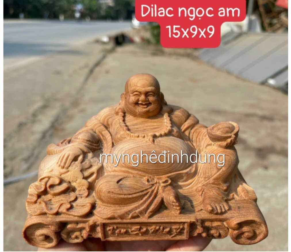 ✨Tượng phật di lặc mini để ôtô ,bàn làm việc ,bàn học ...bằng gỗ ngọc am thơm nức kt 15×9×9cm